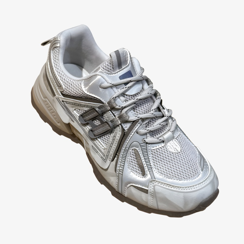厚底メッシュ通気性フォレストガンプシューズ、女性用2025年秋新作、丸いつま先と万能カジュアルスポーツシューズの小さなスポーツシューズ